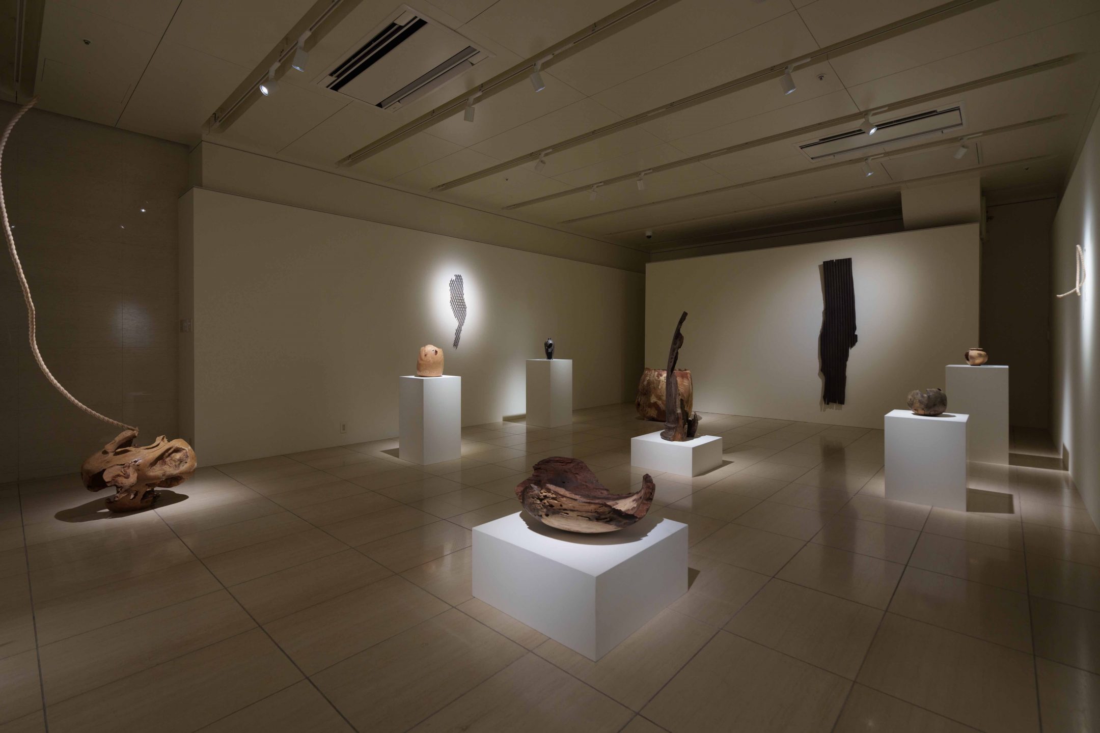 Nakanishi’s works are made from old pieces of wood. The artist discovers the beauty hidden in their shape, and carves out the unnecessary parts. The voids created by missing parts (eaten away by insects or rotten away), and the space between wooden pieces become also parts of the shape of his works.