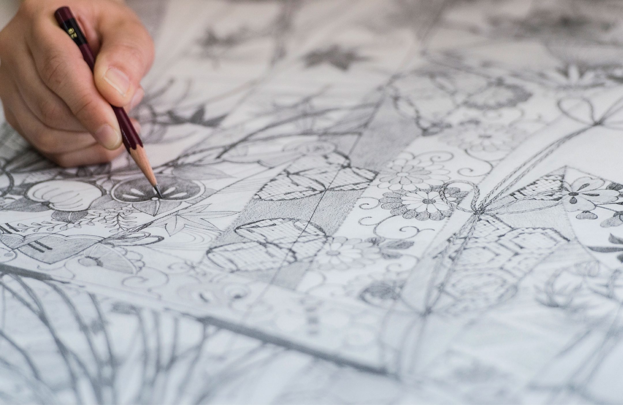 Yuzen is one of Japan's traditional dyeing techniques. For Yuzen kimonos, craftsmen sketch designs, draw lines, and dye fabric by hand.The process of making a kimono starts with our designers drawing a sketch by hand.