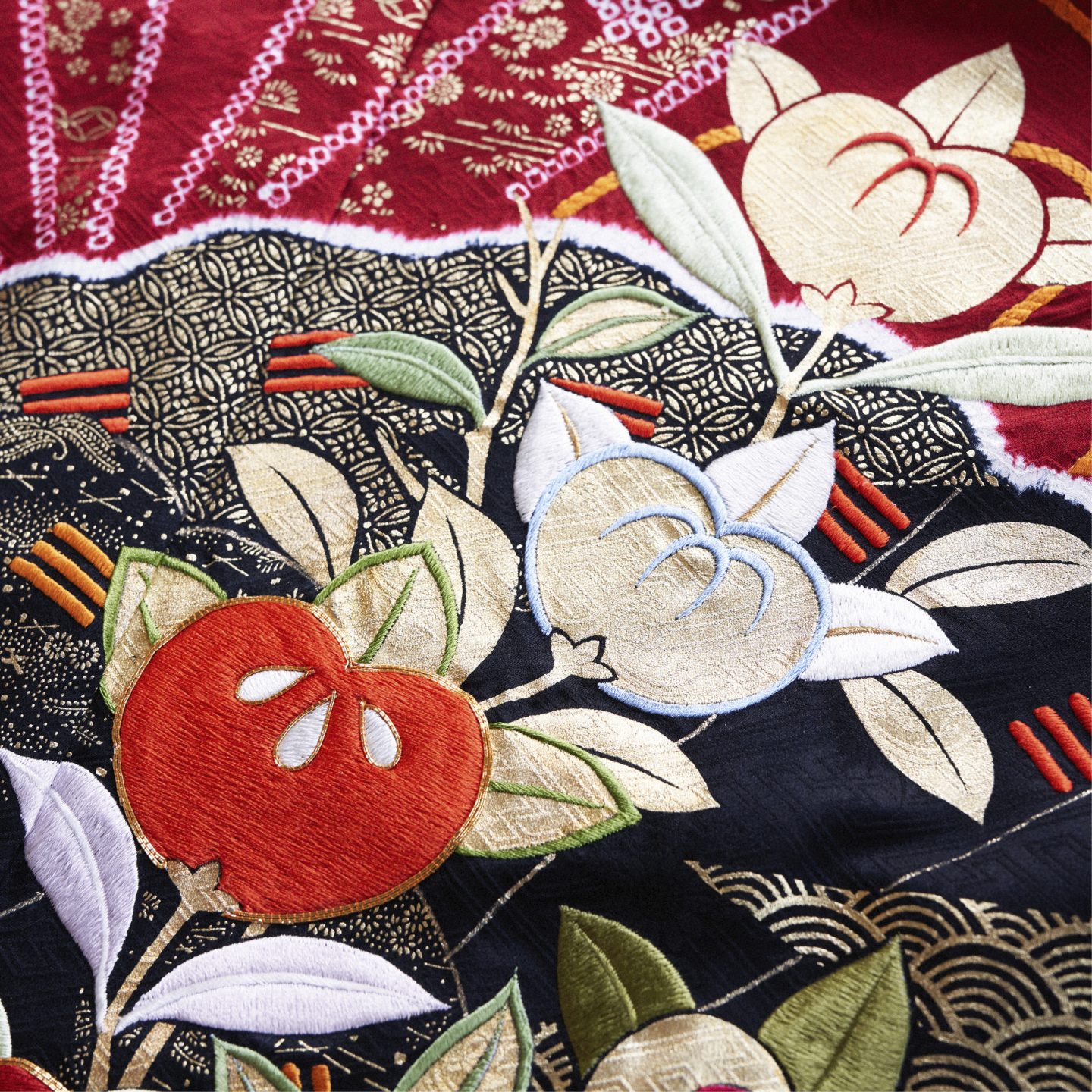 This design symbolizes the fruits and leaves of Tachibana, a citrus native to Japan.It's traditionally associated with longevity and eternal prosperity, as the leaves remain vibrant throughout the year while bearing fruit.Therefore, Tachibana is drawn as a symbol of good luck.