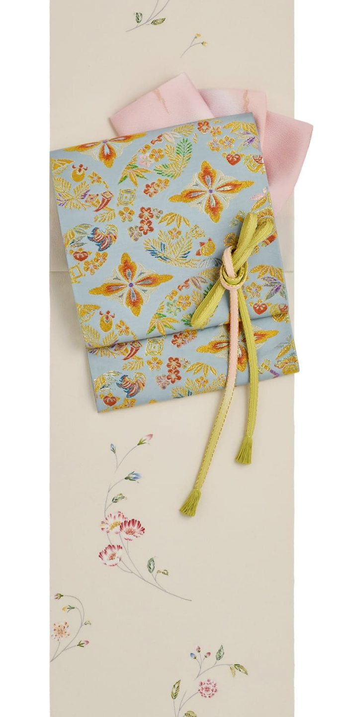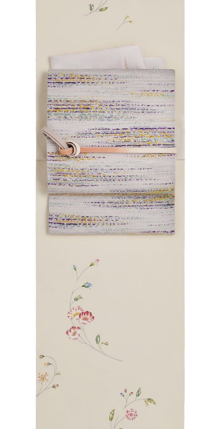 全体を優しい色合いでまとめると、付下の持つやわらかい雰囲気がより一層引き立ちます。