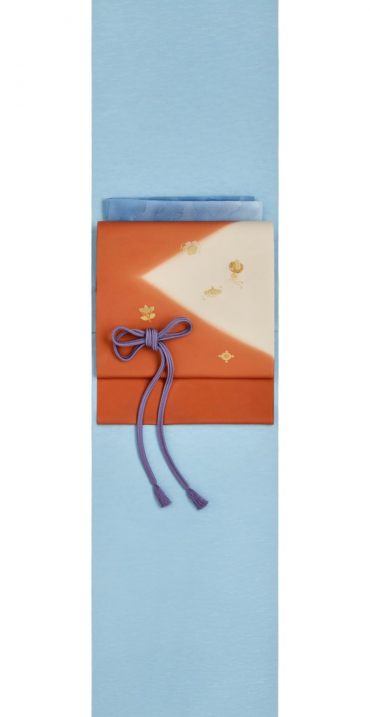 新しい年の始まりの改まった気持と新春の晴れがましさを、冬の澄んだ空気ような清らかな色の色無地と、宝尽くしの染め帯で表現しました。背筋がスッと伸びるような凜としたコーディネートです。
