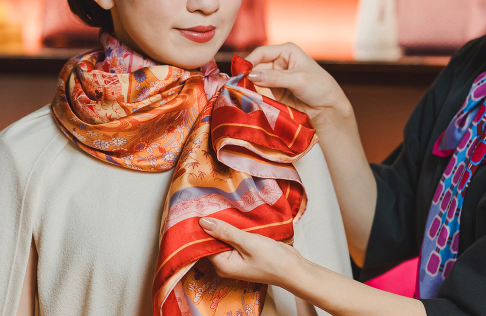 普段の装いを華やかに演出する、さまざまなスカーフのアレンジをご紹介いたします。