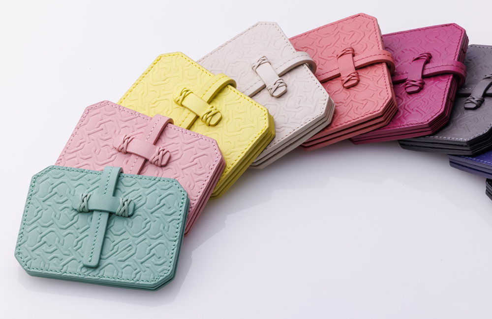 千總の紋にも使われているモノグラムデザインの型押しがアクセントになっています。