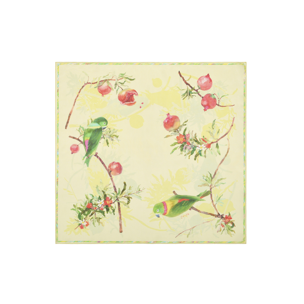生命力あふれる春におすすめしたい、花や鳥などの自然のモチーフを瑞々しく、色彩豊かに表現したスカーフ。お気に入りの一枚をみつけて。