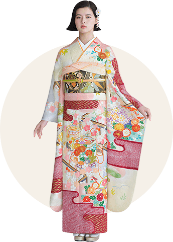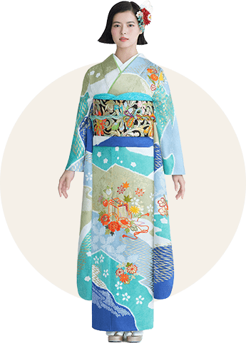 デザインや色彩は新鮮な感覚で、現代の女性を瑞々しく装う千總の振袖。